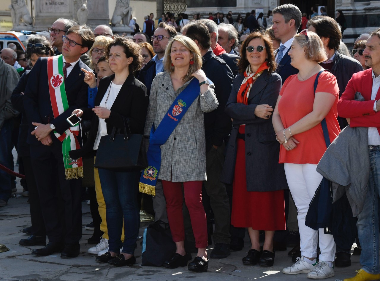 “In questa piazza difendiamo il diritto di Firenze di avere memoria del suo passato – ha sottolineato il sindaco nel suo intervento – e di costruire un futuro di pace e prosperità. Forse anche per questo mai come in questi anni sono accorsi così tanti cittadini in piazza. Voglio dire a tutti voi grazie”. Il sindaco, che ha ricordato tra gli altri il partigiano Silvano Sarti scomparso nei mesi scorsi e ringraziato anche i soldati alleati, ha più volte sottolineato, tra gli applausi, come la festa di oggi sia di tutti, “un bene per la città e un bene per tutti”, motivo per cui ha invitato alla cerimonia tutti i candidati alle prossime amministrative: presenti Roberto De Blasi del M5s, Antonella Bundu della Sinistra, e Mustapha Watte per Punto e a capo. Assente, come già annunciato con seguito di polemiche, Ubaldo Bocci del centrodestra, che ieri, tornando a parlare della sua mancata partecipazione, aveva parlato del 25 aprile come manifestazione diventata ormai di parte.