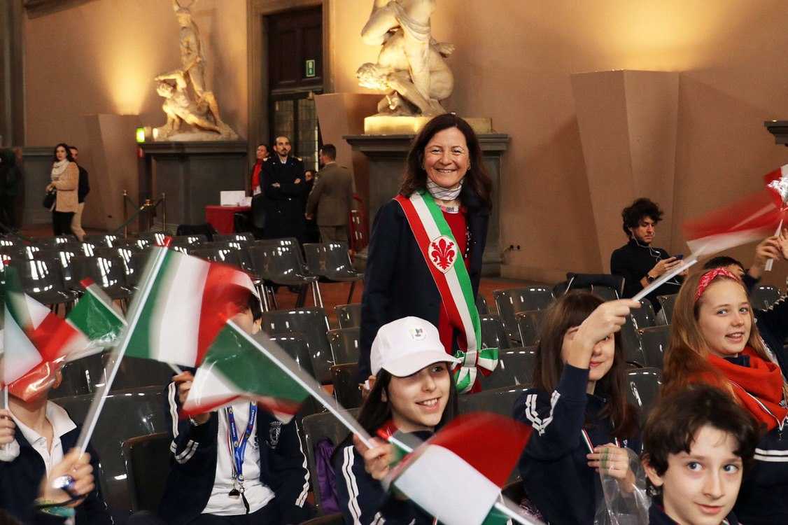 C’era anche Martina Giangrande, figlia del brigadiere dei carabinieri ferito a colpi di pistola lo scorso 28 aprile davanti a Palazzo Chigi, alla ‘Giornata dell’Unità nazionale, della Costituzione, dell’Inno e della Bandiera’ che si è svolta questa mattina nel Salone dei Cinquecento di Palazzo Vecchio. Ad organizzarla, come ogni anno, i 15 Rotary club dell’area medicea, l’assessorato all’educazione, la legione carabinieri di Firenze, i Rotaract e l’Interact. All’iniziativa è collegato il concorso (indetto dall’assessorato all’educazione, dal Rotary Club dell’Area Medicea e con gli altri partner dell’evento) riservato alle scuole primarie e secondarie di primo grado del Comune sul tema ‘Il Tricolore il simbolo, la storia’. «Tante donne e tanti uomini hanno sacrificato la propria vita per il tricolore che compare, con le medaglie al valor militare e civile, sul Gonfalone della nostra città. Penso che dietro a questa bandiera si possa creare una bella, grande e unita comunità, che è anche una comunità di città, non solo nazionale» ha detto il vicesindaco Dario Nardella nel suo saluto. Il vicesindaco ha fatto «un grande in bocca al lupo» agli studenti presenti nel Salone dei Cinquecento «perché possiate partecipare – ha aggiunto – con entusiasmo al concorso e perché possiate partecipare liberando la vostra creatività, inventando magari storie vostre intorno a questa bandiera, legate anche a qualche esperienza». Dopo aver salutando con affetto Martina Giangrande le ha consegnato un lingottino d’argento che raffigura i monumenti di Firenze. Nardella l’ha definita «un esempio per i giovani» per la grande dedizione per il padre e le ha detto di considerare Palazzo Vecchio «come casa sua. Quando vorrai – ha concluso – bussa alla nostra porta e noi saremo sempre qui ad accoglierti e saremo accanto a te». «Il Tricolore è simbolo dell’unità e della libertà dell’Italia, da affidare alle nuove generazioni – ha sottolineato l’assessora Giachi – feste come questa, anche con il loro armamentario di retorica, sono il momento nel quale molti ragazzi familiarizzano la prima volta con gli eventi fondativi della vita del Paese. Sono innanzitutto occasioni educative, che ci spingono a superare qualunque approssimazione nella lettura della storia e dei simboli; ecco perché i protagonisti di oggi sono i giovani delle nostre scuole. Attraverso di esse ognuno di loro, se accompagnato con intelligenza, può imparare come l’identità italiana sia attraversata da tensioni profonde ma che ci sono dei valori sui quali ci riconosciamo e che proprio su questi valori possiamo fondare con certezza il nostro futuro di popolo e di Paese». (fn)