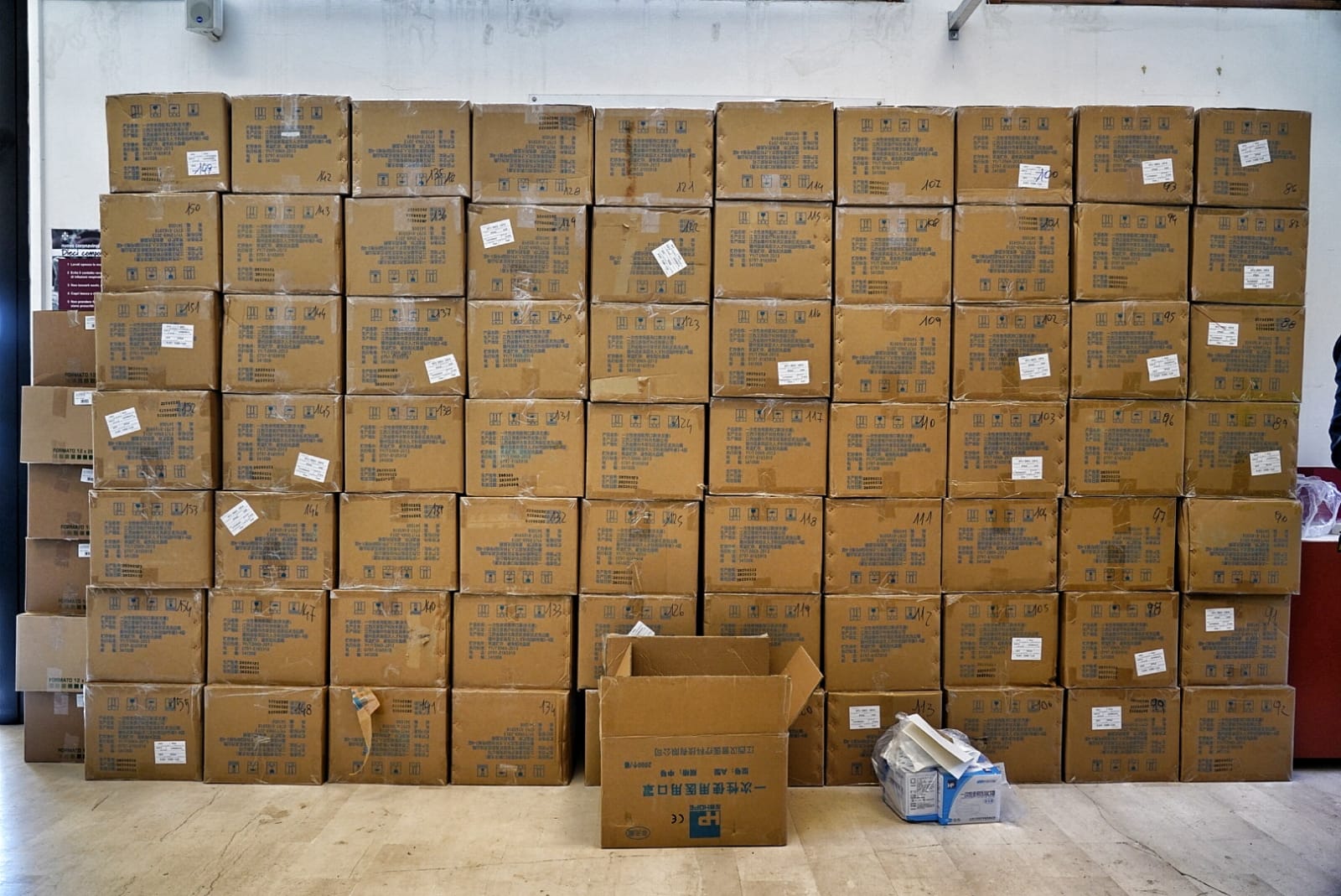 Saranno un po’ meno di 1 milione circa le mascherine protettive che, a partire da domani, cominceranno ad essere distribuite gratuitamente a Firenze dalla protezione civile comunale. Fanno parte del primo contingente dei 10 milioni di pezzi ordinati dalla Regione Toscana in Cina e stoccati questo pomeriggio nei magazzini della protezione civile della città metropolitana a Calenzano.